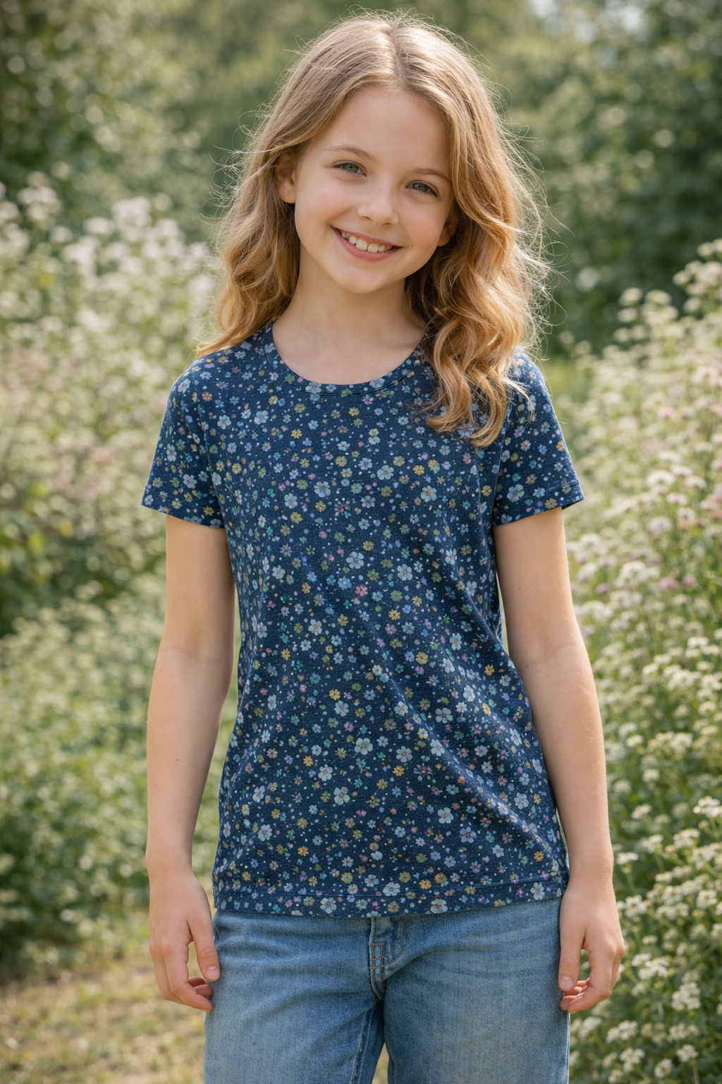 Katoenjersey bLittle Flowers, blauw Art.nr.: 5913-8